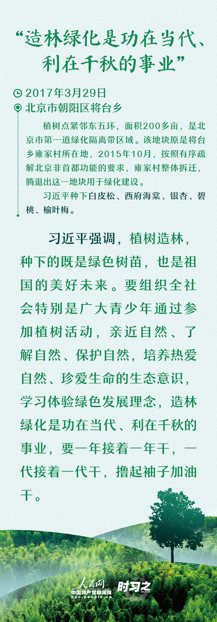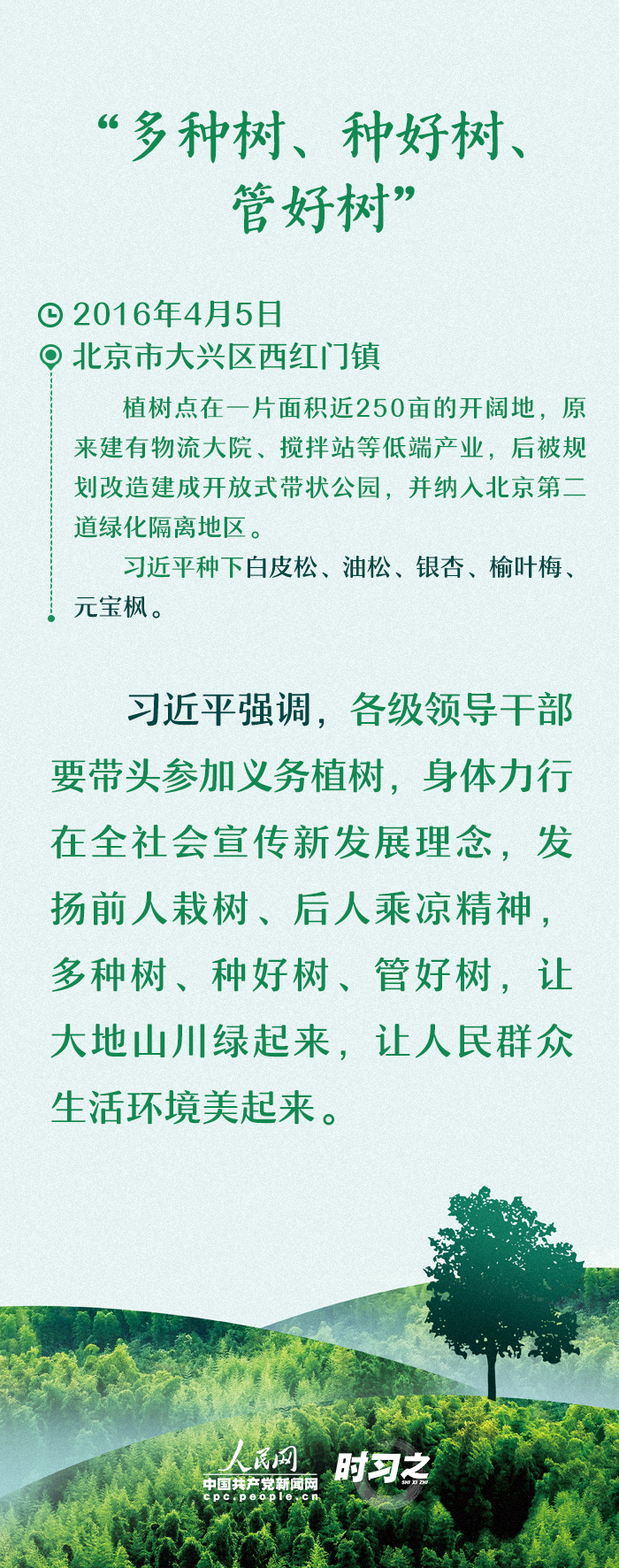 春風吐綠、草木初萌,又是一年植樹節。“造林綠化是功在當代、利在千秋的事業” “前人栽樹,后人乘涼”……黨的十八大以來,習近平總書記每年都會參加義務植樹活動,并多次談到植樹造林的重大意義。過去九年間,習近平總書記都在哪里植樹?種了哪些樹?每次植樹都講了些什么,一起來回顧。