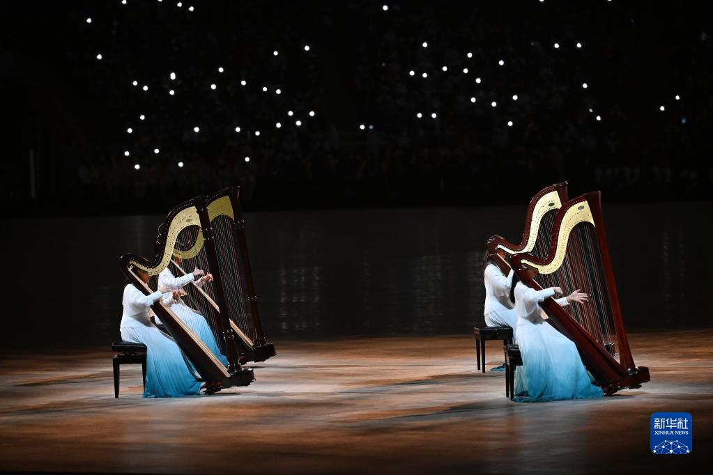 在開場的《高光時刻》環節,伴隨著4位豎琴演奏者演繹的德國作曲家門德爾松創作的《乘著歌聲的翅膀》,冬殘奧會開幕后9天賽事的精彩瞬間在“留聲機”中浮現。沈晨說:“很多殘疾人雖然身體殘缺,但是心在飛翔,所以我們選擇了這首《乘著歌聲的翅膀》。”