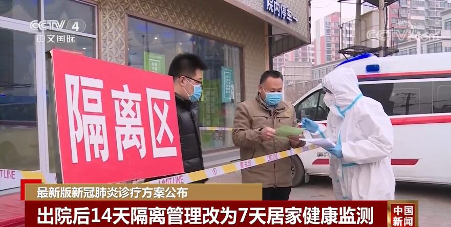 方案還調(diào)整解除隔離管理、出院標(biāo)準(zhǔn)以及解除隔離管理、出院后注意事項(xiàng)。比如,將“出院后繼續(xù)進(jìn)行14天隔離管理和健康狀況監(jiān)測”修改為“解除隔離管理或出院后繼續(xù)進(jìn)行7天居家健康監(jiān)測”。