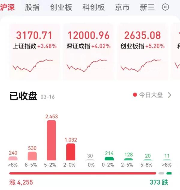 3月16日a股大漲。
