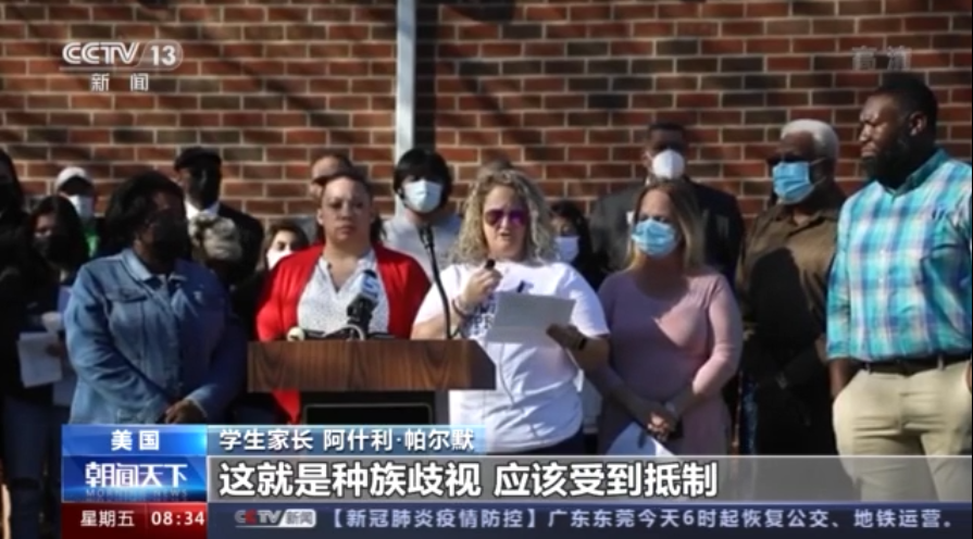 學生家長 阿什利·帕爾默:這不是我們第一次面對針對我們孩子的種族主義行為了,這不是什么多元化與包容性,也不是(種族)平等,這就是種族歧視,應該受到抵制。