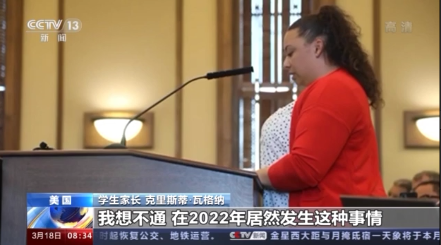 學生家長 克里斯蒂·瓦格納:多日以來,我對這種種族主義活動感到生氣,我也感到很悲傷,我想不通,在2022年居然發(fā)生這種事情。實際上,這種種族主義行為不僅僅發(fā)生在查塔姆縣,在北卡羅來納州,甚至整個美國都存在。教育政策的制定者們,我希望你們可以比以往多教一教學生美國歷史,包括好的、壞的和丑惡的事情,讓他們知道美國是怎樣走到今天的。
