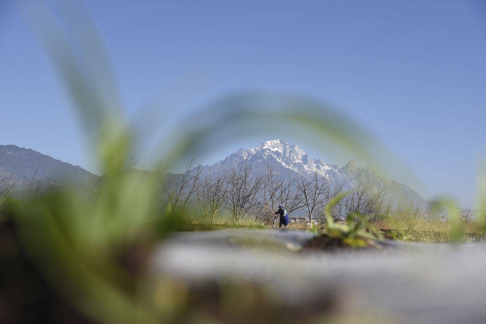 ↑ 在云南省麗江市玉龍縣黃山鎮,村民在地里勞作。