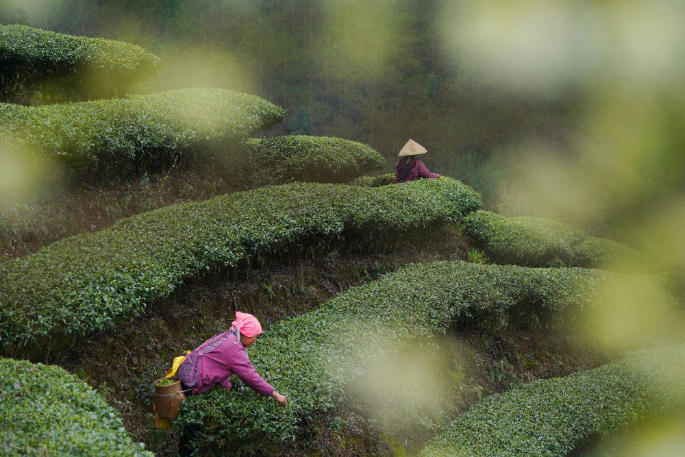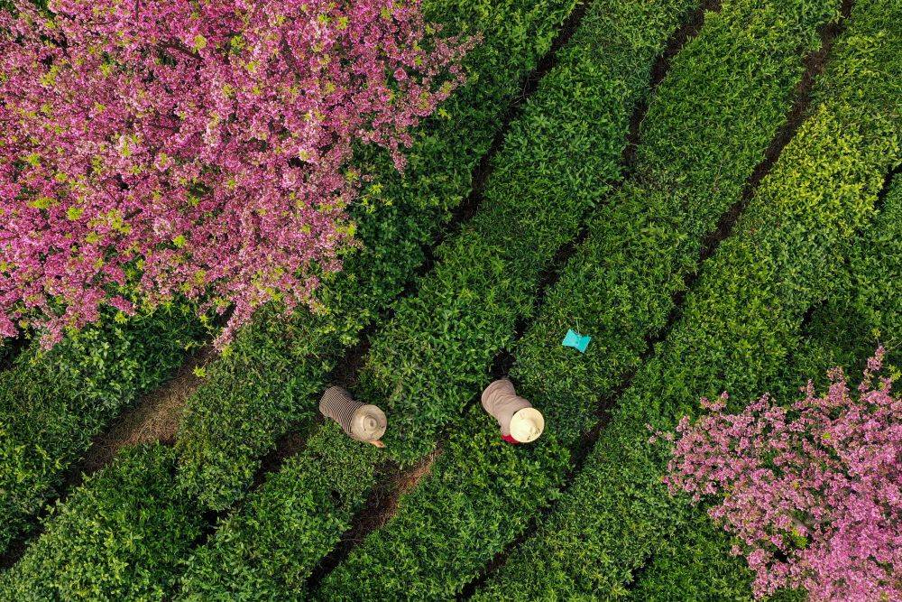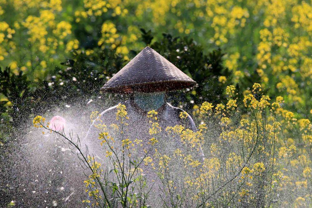 ↑ 在廣西柳州市融安縣浮石鎮東江村,農民在田間管護農作物。