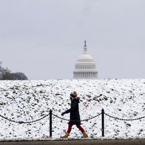 3月12日,在美國首都華盛頓,一名女子從國會大廈附近走過。(新華社記者劉杰攝)