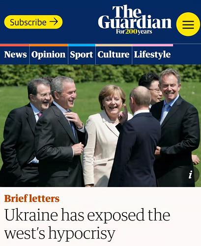 △英國 《衛報》刊文說,烏克蘭暴露了西方的偽善。