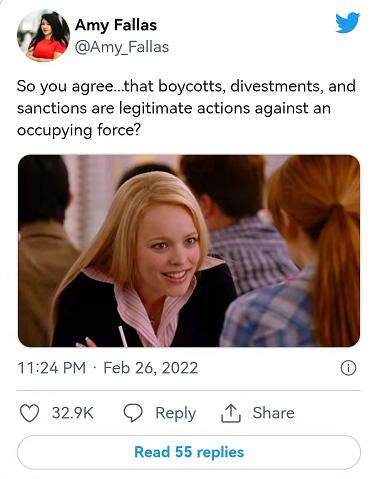 也有網友慨嘆,西方國家扮演占領者角色入侵別人的時候,怎么沒對自己進行抵制、撤資、制裁!這條搭配了不可思議表情的推文,獲得了三萬多點贊。