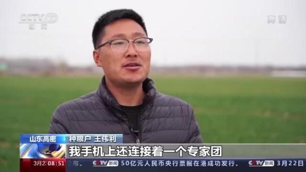 山東高密市種糧戶 王偉利:現(xiàn)在不是我一個人在種地,我手機(jī)上還連接著一個專家團(tuán)。根據(jù)他們的指導(dǎo),在冷空氣來臨之前,我早就給小麥澆上了水,土地沒有裂縫,冷空氣就進(jìn)不去。