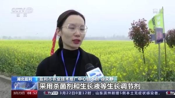 監(jiān)利市農(nóng)業(yè)技術(shù)推廣中心技術(shù)員 徐文靜:采用殺菌劑和生長液等生長調(diào)節(jié)劑,以達(dá)到促進(jìn)油菜正常生長,防菌核病、防早衰、防花不實和防高溫逼熟的一個效果,以保證油菜的豐產(chǎn)。