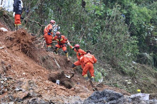 3月24日,搜救人員在廣西梧州藤縣空難事故核心區(qū)繼續(xù)搜索。新華社發(fā)(中國民航報(bào)供圖)