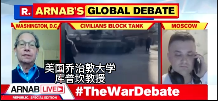 在節目中,庫普坎批評印度“不能再做‘騎墻派’”,遭到阿納布回懟“不要教育我們”,并怒斥“美國沒有資格假裝是民主和人權的捍衛者”。當庫普坎說到“你看到西方國家已經團結起來對抗俄羅斯了 ,三分之二的國家都在反對俄羅斯”時,印度主持人阿納布搖頭連說“不是的”,已經忍不住想要插話進去,但沒能成功。在庫普坎結束發言后,阿納布首先表示:“我希望你能讓我體面地把話說完。”“首先,恕我直言,庫普坎教授,你的發言在道德立場上站不住腳!你們美國人沒有資格,美國沒有資格假裝是民主和人權的捍衛者。你們才是暴行的罪魁禍首。”主持人阿納布大聲呵斥。他隨即提到當初奧巴馬在利比亞內戰時伙同盟友攪亂局勢,使內戰延續了十年,還列舉了美國對多個國家發動戰爭,包括伊拉克、敘利亞、也門、索馬里、尼日爾,并用無人機殺害了上千人。“你說到印度,我們是一個大國,我們不是你們的‘衛星國’,所以不要教育我們該做什么。我們會管好自己的。”主持人向庫普坎說道。3月21日,該節目就美方發出的“印度站在歷史錯誤一邊”言論展開了辯論。庫普坎教授再次挑戰了印度媒體的神經。在這次的節目里,主持人阿納布認為在烏克蘭問題上,印度的對外政策是獨立和中立的。他說一些關鍵國家面對這一的危機時,保持中立是必要的。庫普坎教授在回應中聲稱,印度在選邊站(India is choosing sides)。并質問印方,當烏克蘭深陷危機時,印度在哪?印度要決定他們是站在歷史的正確一邊還是錯誤一邊?印度為何不站出來“譴責”俄羅斯?這時主持人阿納布先問了一個問題:“美國為什么不對中國說同樣的話?” 隨后把問題拋給了最左邊的一名印度嘉賓。