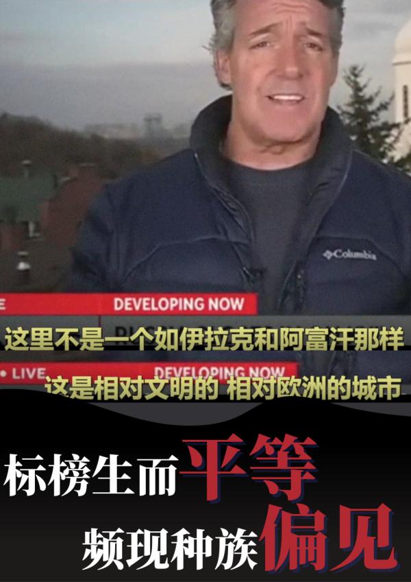 然而,俄烏沖突卻暴露出不少西方人仍以膚色、種族、宗教信仰作為評(píng)判他人的標(biāo)準(zhǔn)。“金發(fā)、碧眼”“白種人”“這些逃離戰(zhàn)火的人不像敘利亞難民那樣”……這些詞句出現(xiàn)在美國(guó)全國(guó)廣播公司、法國(guó)商業(yè)調(diào)頻電視臺(tái)等媒體的報(bào)道中。