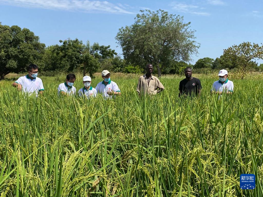 這是2021年7月13日,中國專家組成員在布基納法索中西大區水稻示范區查看苗情。新華社發(中國農業組供圖)