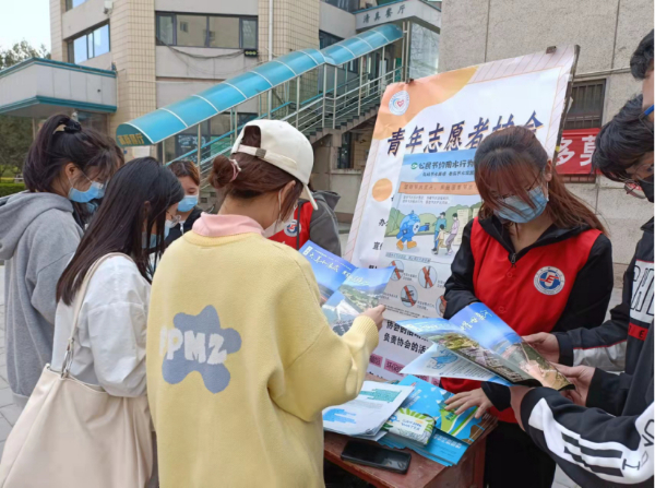 看一場節(jié)能宣傳。下午16:00,在二餐廳門口,青年志愿者協(xié)會與后勤管理處(保定)一同舉辦節(jié)水宣傳活動,志愿者們向路過同學發(fā)送節(jié)水宣傳單,并為同學們講解節(jié)能知識。同學們仔細聽志愿者的講解,并在宣傳展板面前駐足觀看。