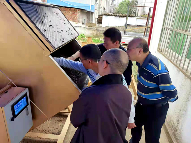 劉國英正在查看制茶設備改良技術。受訪者供圖