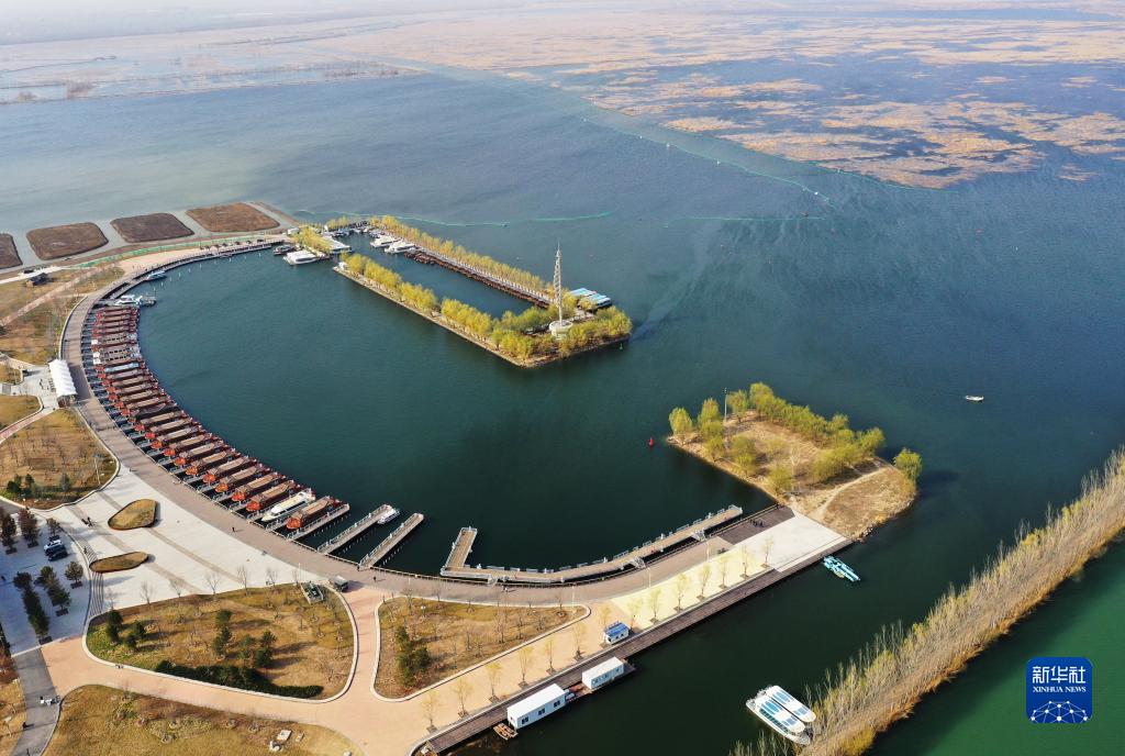 這是3月28日拍攝的雄安新區白洋淀旅游碼頭(無人機照片)。新華社記者 朱旭東 攝