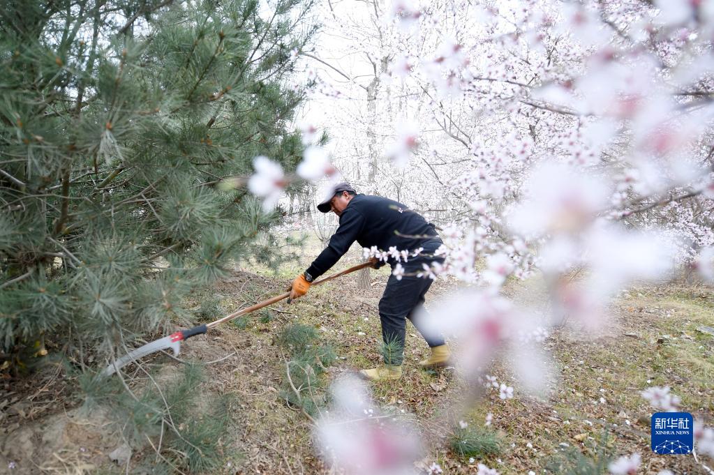 工作人員在雄安新區千年秀林修剪樹木(3月29日攝)。新華社記者 駱學峰 攝