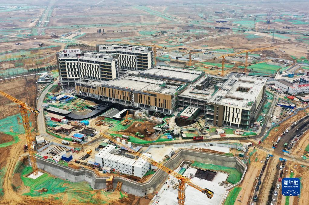 這是3月29日拍攝的雄安新區首都醫科大學宣武醫院雄安院區項目建設施工現場(無人機照片)。新華社記者 朱旭東 攝
