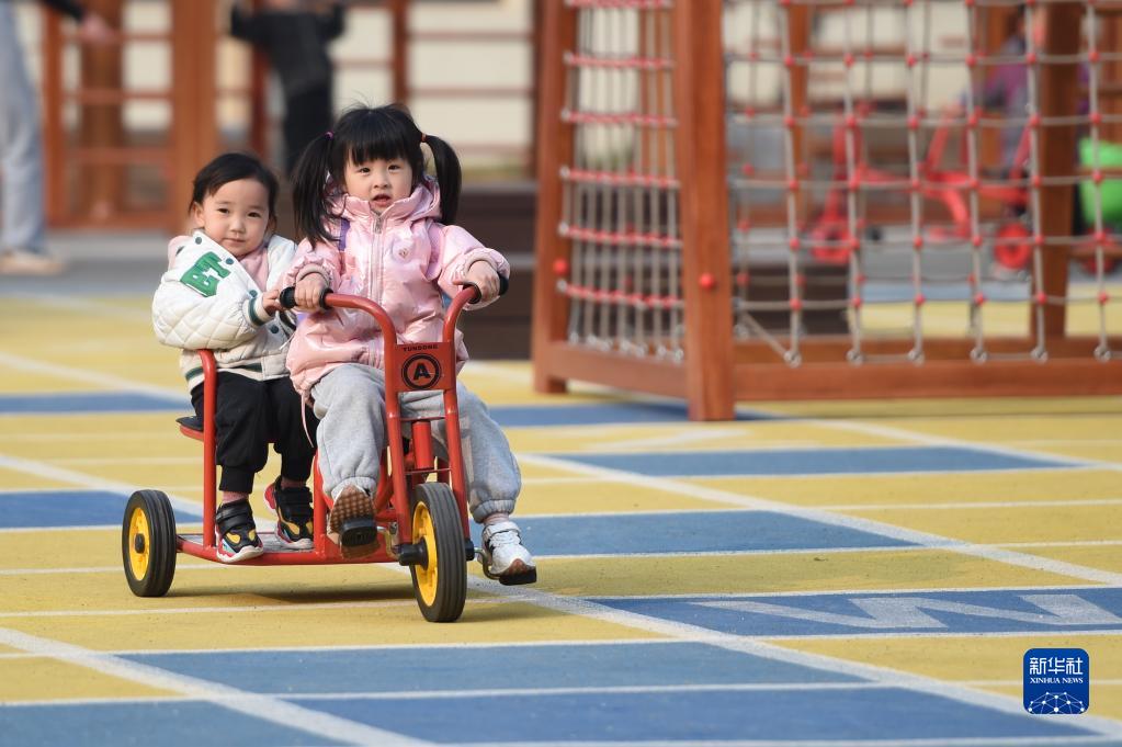 小朋友在雄安容和雙文幼兒園玩耍(3月23日攝)。新華社記者 駱學峰 攝