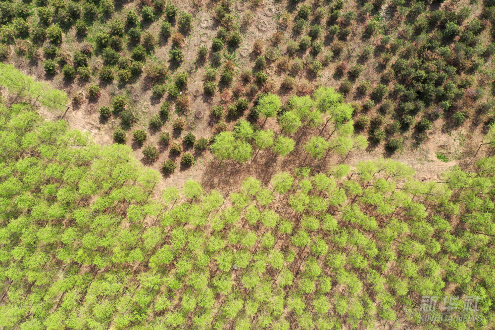 雄安新區“千年秀林”(無人機照片,2021年3月31日攝)。截至2022年3月,雄安新區森林覆蓋率已超過30%。根據規劃,雄安未來藍綠空間占比穩定在70%。