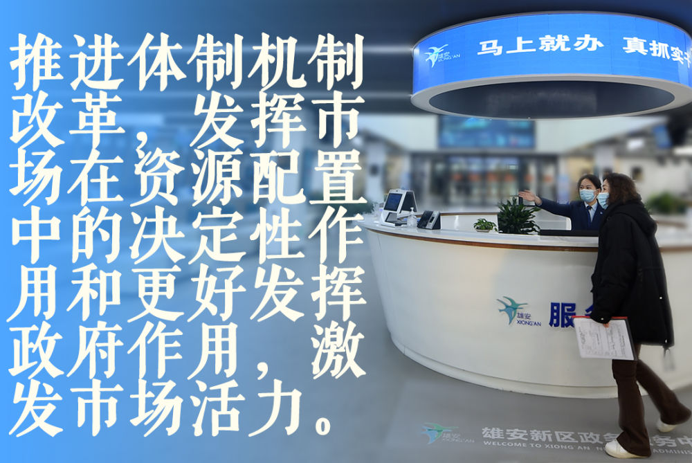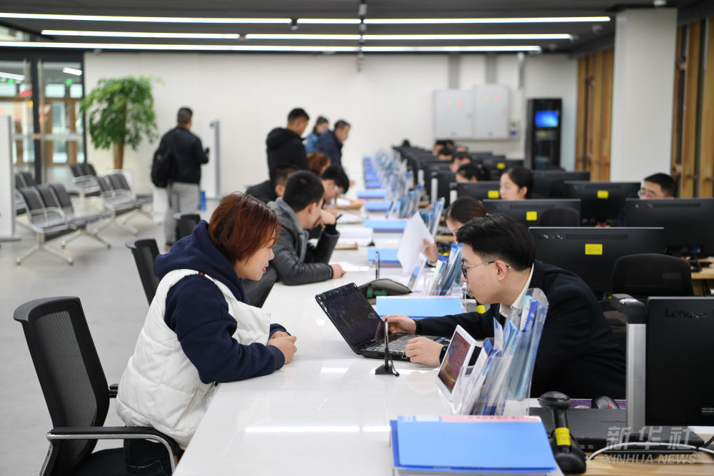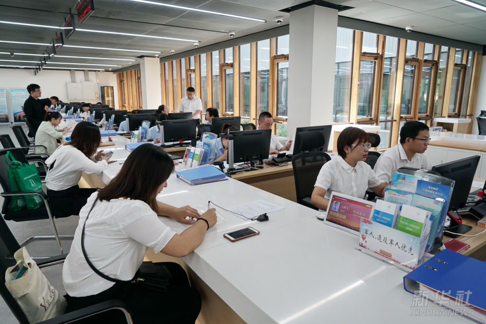 群眾在雄安市民服務中心內辦理業務(2019年1月17日攝)。2021年,雄安新區提出“一窗受理、一網通辦、一次辦結、一枚印章管到底”的“四個一”審批模式,推動技術、人才、資金等要素資源集聚。