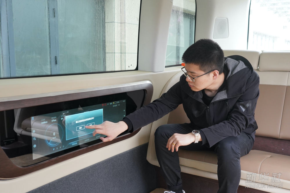在雄安智繪未來科技園,雄安數字交通實驗室工作人員操控無人駕駛汽車進行自動駕駛(2021年3月26日攝)。