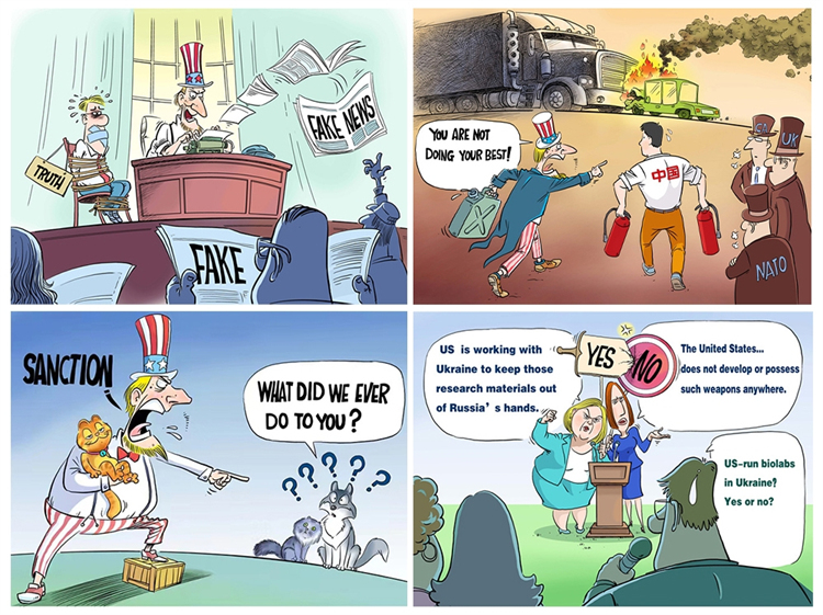 俄烏沖突爆發(fā)以來,部分美西方媒體和政客提前發(fā)布沖突爆發(fā)的假消息,造謠“中方曾告誡俄方不要在北京冬奧會期間‘入侵’烏克蘭”,稱中方“無意參與任何形式的烏克蘭問題外交解決方案”……漫評戳穿美方炮制的一個又一個拙劣的謊言,引發(fā)各國民眾的共鳴。