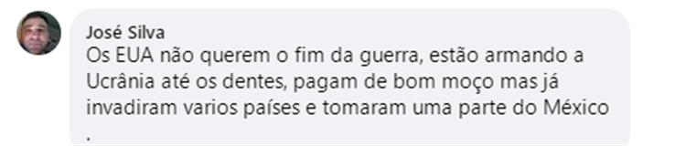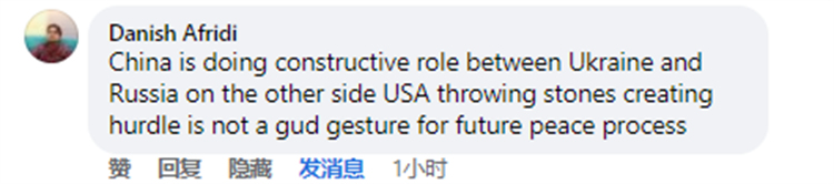 海外網(wǎng)友在人民網(wǎng)葡文社交媒體賬號留言評論:“美國不想結(jié)束這場戰(zhàn)爭,他們已經(jīng)武裝到了牙齒,滿嘴謊言。”