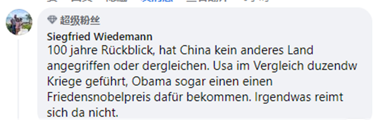 海外網(wǎng)友在人民網(wǎng)德文社交媒體賬號留言評論。圖片來源:網(wǎng)絡(luò)截圖
