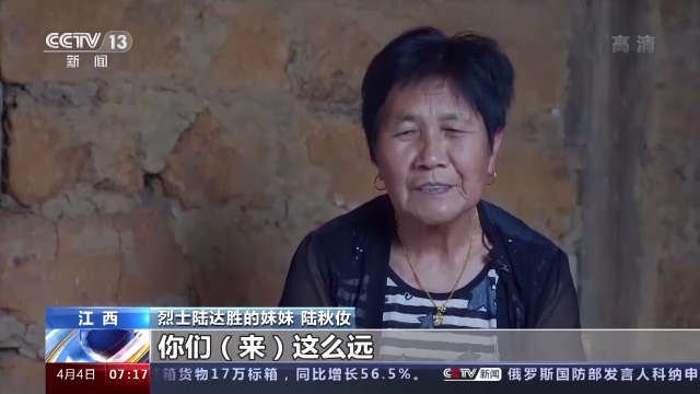 烈士陸達(dá)勝的妹妹 陸秋?:萬萬沒想到。你們(來)這么遠(yuǎn),還不是說在縣里,不是說在鄉(xiāng)里,而是隔山隔水隔幾個省來找我們烈屬。