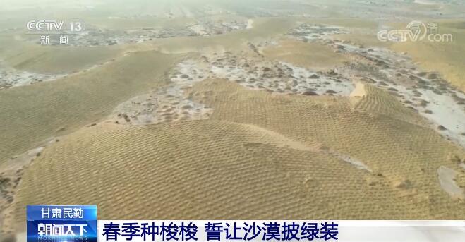 央視網(wǎng)消息:近日,在位于騰格里沙漠和巴丹吉林沙漠中間的甘肅省民勤縣,當(dāng)?shù)氐娜罕姾腿珖嗍》莸闹驹刚邆儊淼竭@里植樹。與一般植樹不同的是,他們種植的是只有指頭粗細(xì)的梭梭苗,澆的水則是數(shù)十公里外用罐車?yán)^來的水。勞作在荒涼的沙漠上,大家仍舊干得熱火朝天。