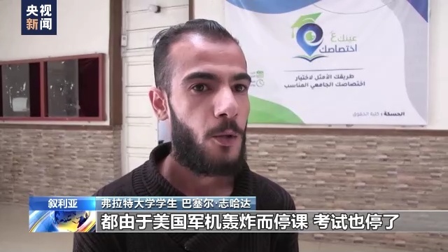 弗拉特大學(xué)學(xué)生 巴塞爾·志哈達(dá):我們的工程學(xué)院、經(jīng)濟(jì)學(xué)院和職業(yè)教育學(xué)院,都由于美國軍機(jī)轟炸而停課,考試也停了,這給哈塞克省的學(xué)生造成極大影響。
