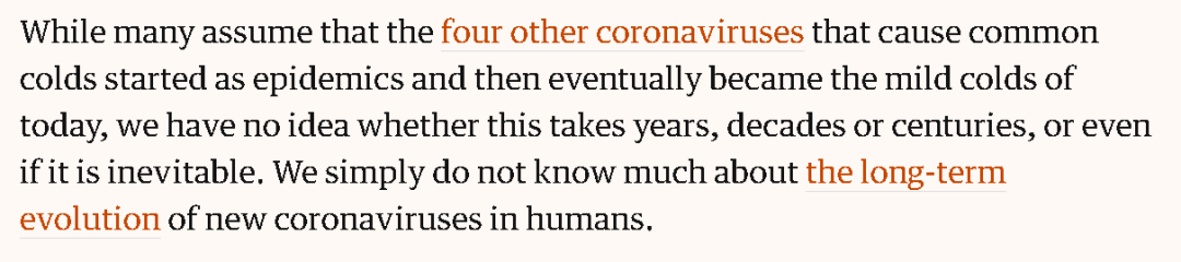 另外,即便是現在人類已知的只會引發普通感冒的四種冠狀病毒,從前也可能引發過大疫情,但人們并不知道它們變異到如今的地步耗費了多長時間——是數年、數十年,還是數個世紀。