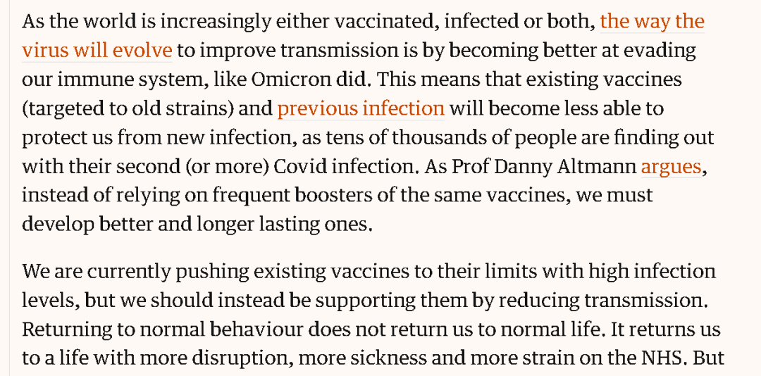 再次,人們誤以為疫苗的接種工作已經完成了,所以現在應該放開了,比如英國的疫苗接種率就很高,尤其是老年人等弱勢群體。然而,疫苗的保護力往往在幾個月后就會逐漸消失,加強針雖然能提供更多幫助,但也需要時間去完成接種。與此同時,病毒也在繼續變異,奧密克戎毒株就已經突破了之前疫苗構建的免疫防線,這意味著之前的疫苗產生的保護力已經不足夠對抗新的疫情,不少二次感染的人就已經感受到了這個現實。所以,除了疫苗,眼下還需要其他防疫措施去減少疫情擴散。如果急著恢復常態,反而會導致更多對日常生活的擾亂,導致更多人發病,并給醫療資源造成更大的壓力。