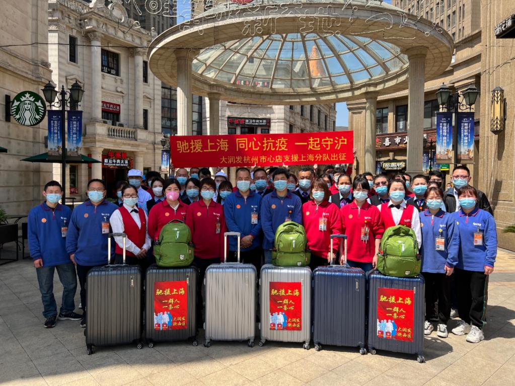 馳援上海的大潤發員工在行前合影。(受訪對象提供)