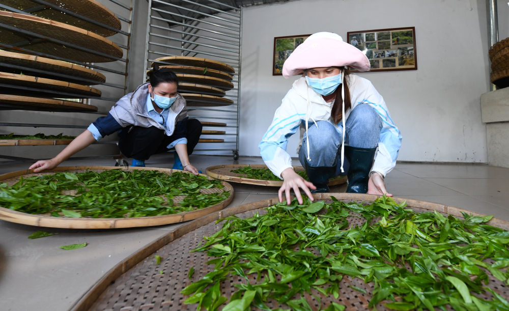 毛納村茶農(nóng)在手工茶坊內(nèi)工作(4月10日攝)。新華社記者 楊冠宇 攝