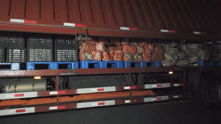 據龍師傅介紹,他開的這輛貨車總重量不能超過18噸,“我們車自重就9噸多了,所以不能超過9噸貨”。當晚志愿者從龍師傅的第一趟車上搬下了白蘿卜145袋、胡蘿卜179袋、蘋果125箱。