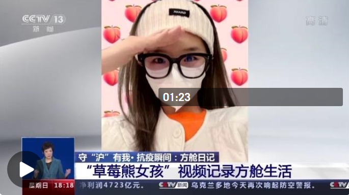 我們首先來認識一個“草莓熊女孩”。4月14日,在世博方艙待了15天的凱梨終于回家了。從接到疾控中心的第一個流調電話開始,凱梨就開始用視頻記錄她這一段特殊的人生經歷。因為隨身帶的小玩偶很搶眼,大家也親切地稱呼她“草莓熊女孩”;顫姌酚^的凱梨用細膩、善意、理解的目光記錄著方艙內的一切,在她的方艙日記里,還有這樣一段溫暖的紀錄:在世博展覽中心方艙醫院,每天中午及傍晚,都有一個聲音準時響起,就是這個專門為方艙中正在接受隔離治療的感染者們開通的專屬電臺。他們有一套獨立的廣播系統,平日發布一些通知、信息,也會播放音樂、相聲等舒緩情緒的節目。“草莓熊女孩”凱梨說,每次一放音樂就忍不住跟著哼唱起來。
