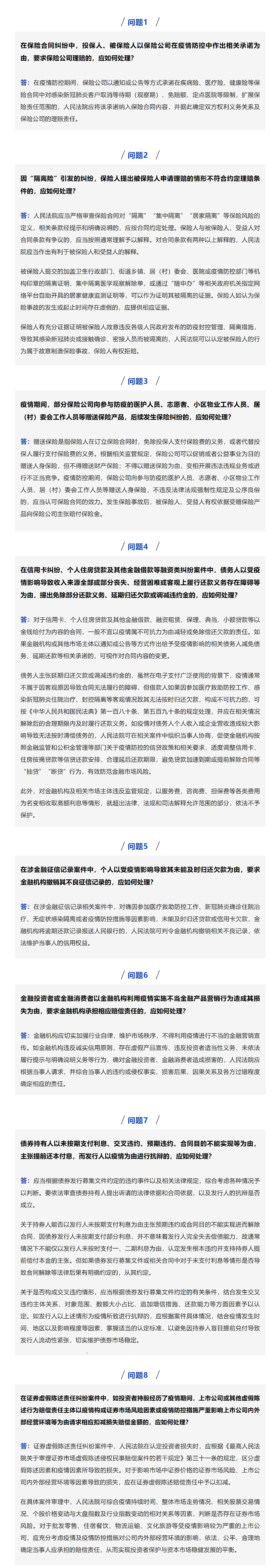 4月18日,上海市高級人民法院針對涉疫情金融糾紛案件相關的8個熱點法律問題進行了詳細解答。具體如下: