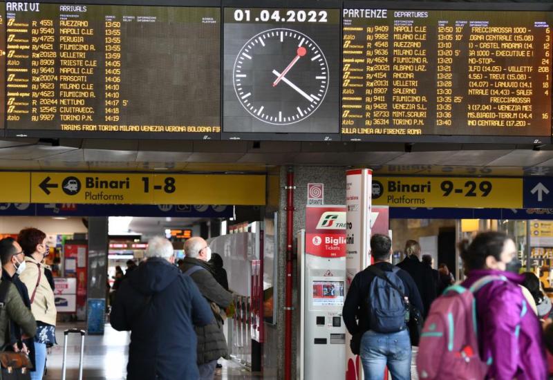 2022年4月1日,旅客在意大利羅馬特米尼火車站了解列車信息。(新華社記者金馬夢(mèng)妮攝)