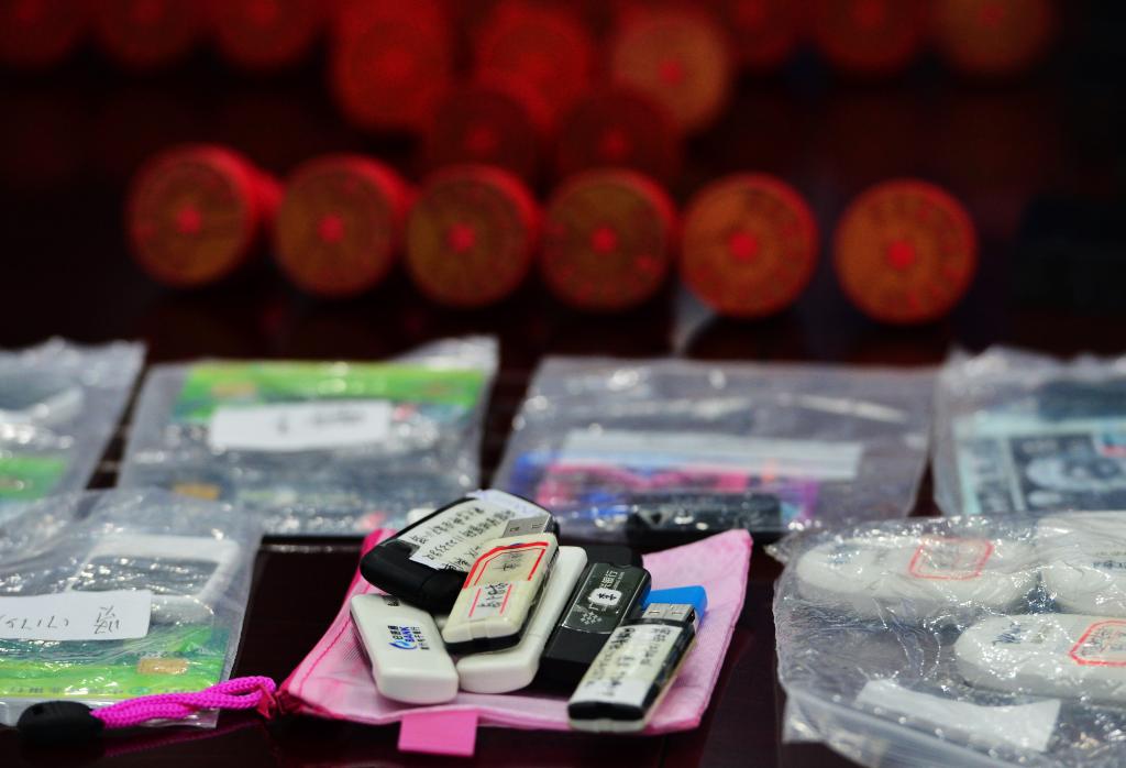 公安、稅務部門收繳的公司印章等作案工具(資料圖)。新華社記者 魏培全 攝