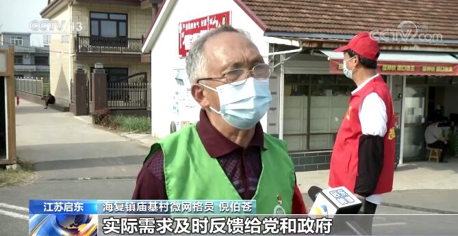 海復鎮廟基村微網格員 倪伯蒼:知道是不是有人外出,是不是有人返回。及時把防控疫情的要求、工作規范和具體措施及時一家一戶去通知老百姓,同時把老百姓的實際困難、實際需求及時反饋給黨和政府。