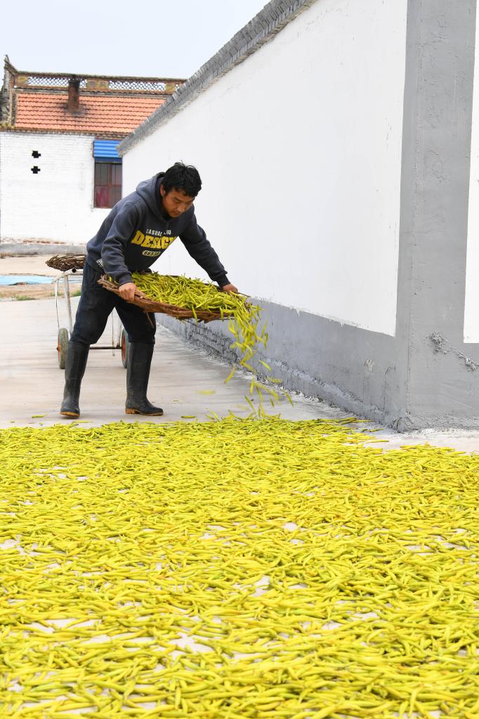 2019年7月18日,在大同市云州區(qū)唐家堡村,村民正在晾曬黃花。 新華社記者 楊晨光 攝