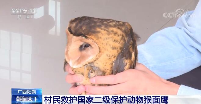 央視網(wǎng)消息:近日,廣西陽朔縣普益鄉(xiāng)留公村兩位村民晚上在村口道路旁發(fā)現(xiàn)了一只類似貓頭鷹的鳥,當時這只鳥身體虛弱無法飛行,村民隨即聯(lián)系了陽朔縣林業(yè)部門。經(jīng)林業(yè)部門工作人員鑒定,這只鳥是國家二級保護動物猴面鷹,它的身體雖無明顯外傷,但是精神狀態(tài)不佳。隨后,林業(yè)部門工作人員將這只猴面鷹移交到桂林市野生動物保護站進行養(yǎng)護觀察。
