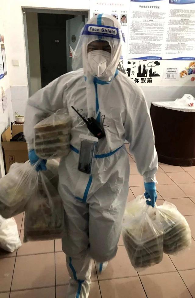 4月中旬,上海氣溫反復(fù),有時(shí)大雨傾盆,有幾天最高溫度近30攝氏度。回憶起那次高溫天的任務(wù),趙永吉記憶猶新:“為了及時(shí)將餐飯送到學(xué)生們手中,隊(duì)員們一個(gè)臺(tái)階接一個(gè)臺(tái)階、一層又一層,上樓、下樓……循環(huán)往復(fù)地爬樓梯,終于完成了發(fā)放。結(jié)束送餐的時(shí)候,脫掉防護(hù)服的我們就像是洗了一個(gè)熱水澡一樣。”