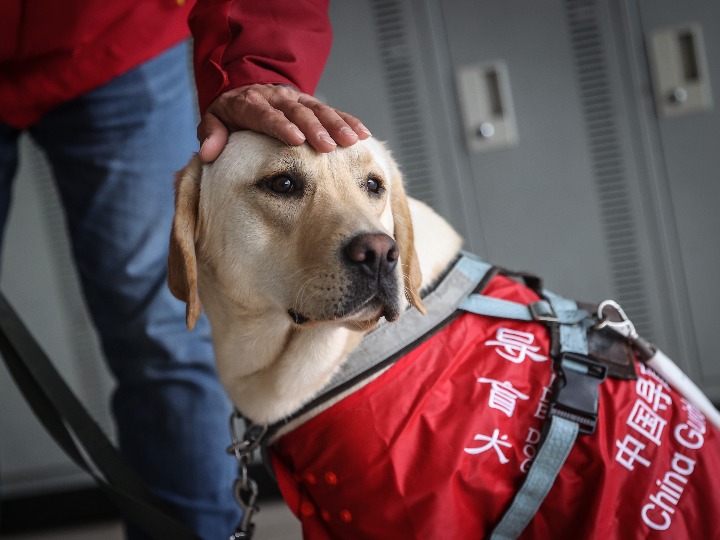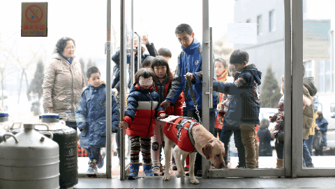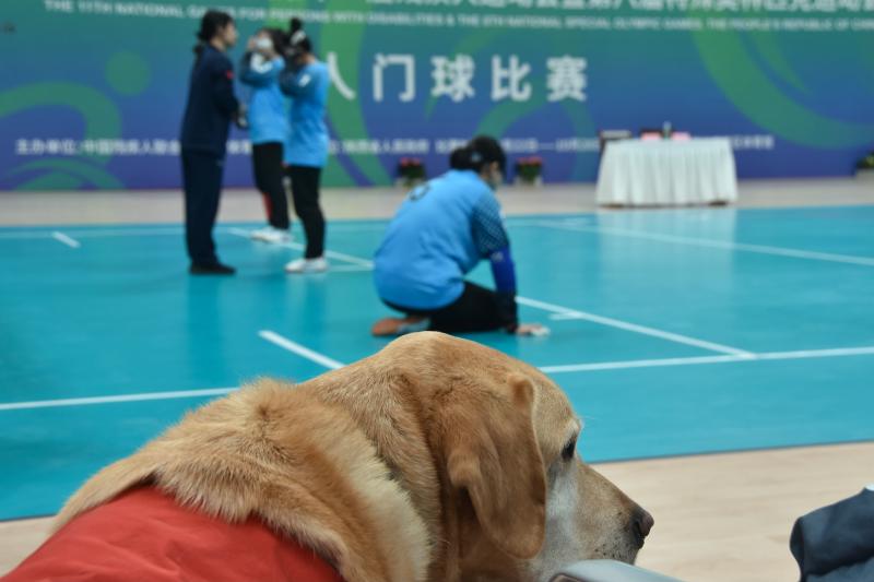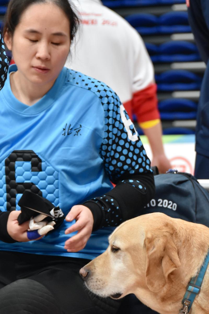 ↑盲人門球名將張魏和她的導盲犬“蒂米”
