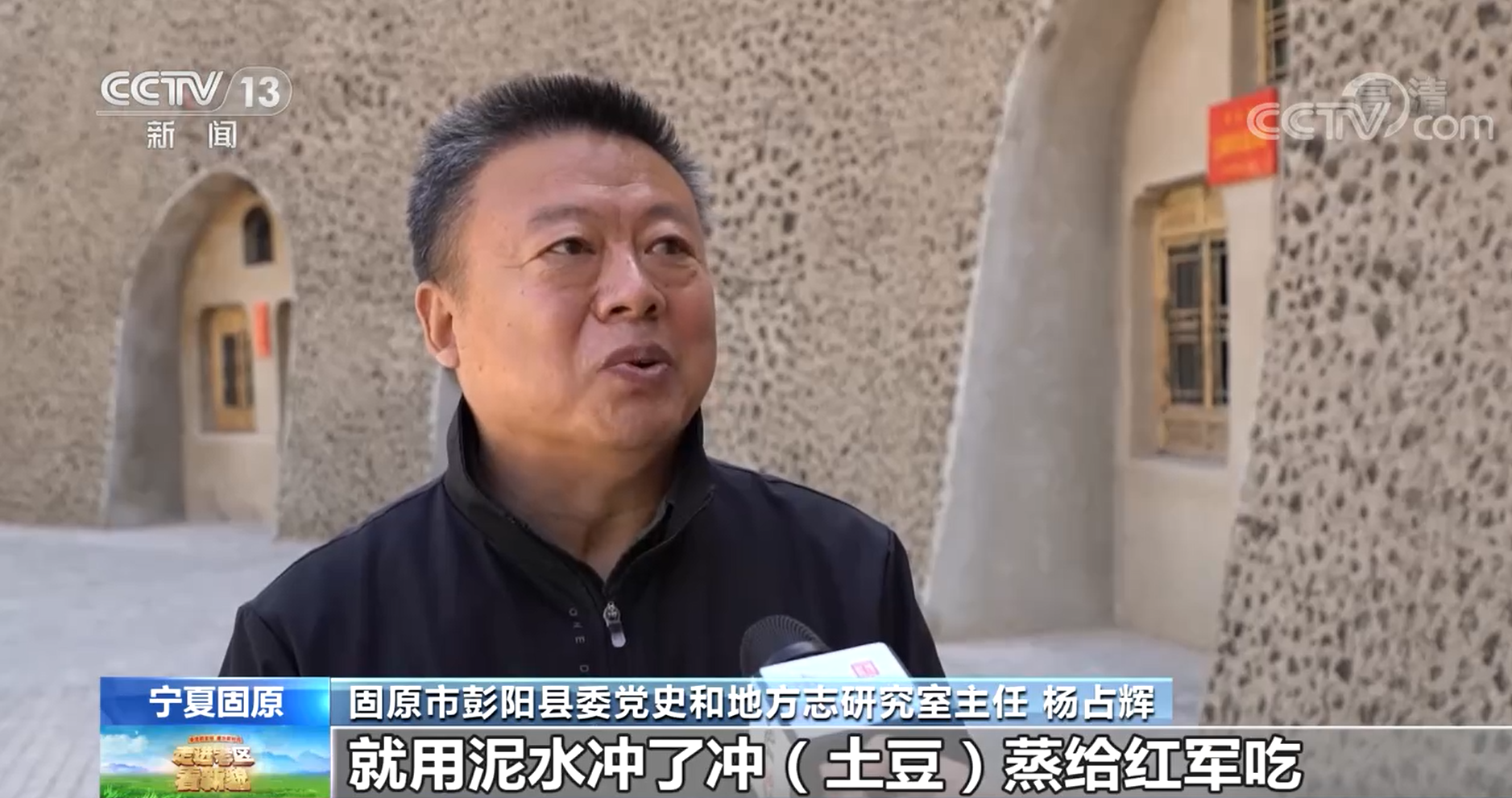 固原市彭陽(yáng)縣委黨史和地方志研究室主任 楊占輝:因?yàn)槿彼陀媚嗨疀_了沖(土豆)蒸給紅軍吃。(紅軍)一邊吃著帶泥的土豆,一邊說(shuō)“今天我們吃帶泥的土豆,是為了明天老百姓不吃帶泥的土豆”。