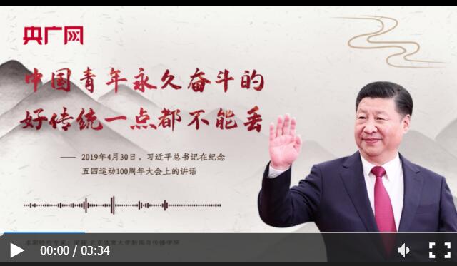 這段話出自2019年4月30日習近平總書記在紀念五四運動100周年大會上的講話。