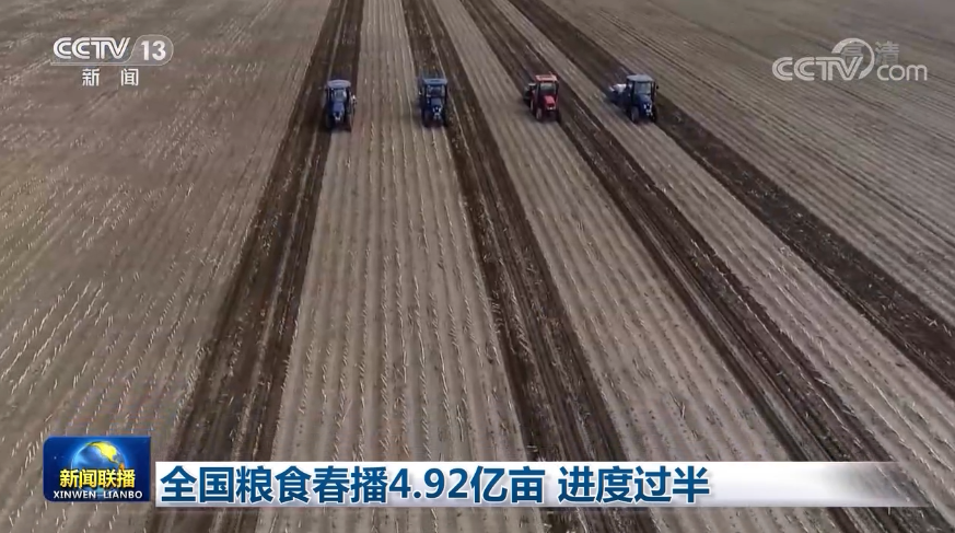 央視網(wǎng)消息(新聞聯(lián)播):眼下,糧食主產(chǎn)區(qū)正抓住農(nóng)時(shí),搶墑播種。全國已春播糧食4.92億畝,完成意向面積超過一半,進(jìn)度快于去年同期。