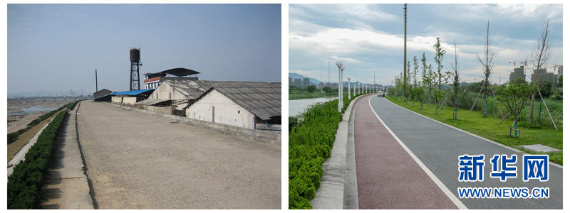 龍泉寶溪鄉溪頭村,活水進村公園建設前后。新華網發